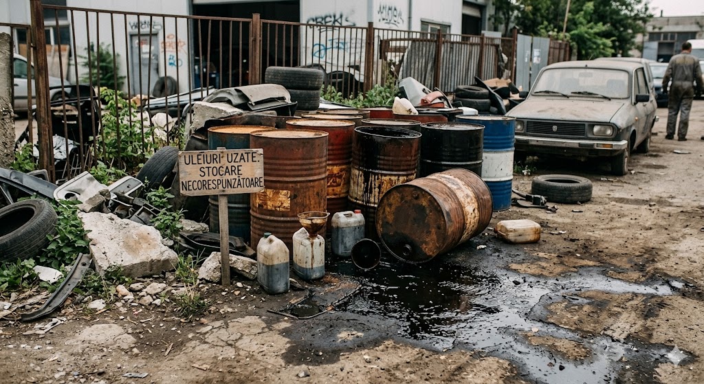 Mai grav, din documentele de gestiune prezentate a rezultat că în luna mai 2025 societatea predase 1.800 de litri de ulei uzat unei persoane fizice autorizate ca „colector de fier vechi”, care nu deținea nicio autorizație de mediu pentru colectarea, valorificarea sau eliminarea uleiurilor uzate. Operațiunea fusese consemnată în registrul intern ca „vânzare reziduuri”.